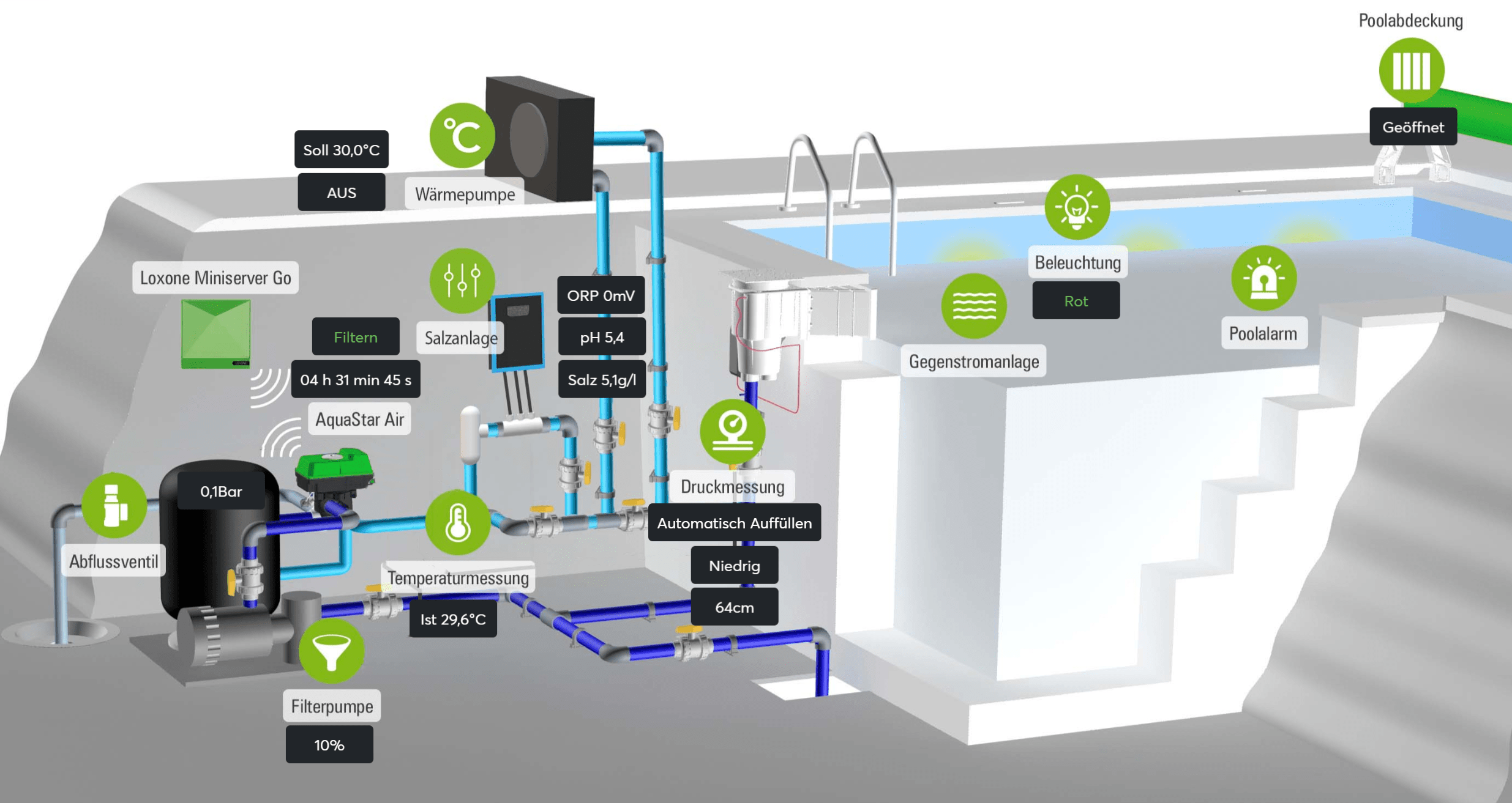 💡 Energie- und Wassersparen: Mit cleverer Automatisierung werden Filterzeiten, Pumpen und Co. optimal geregelt – voll automatisch!