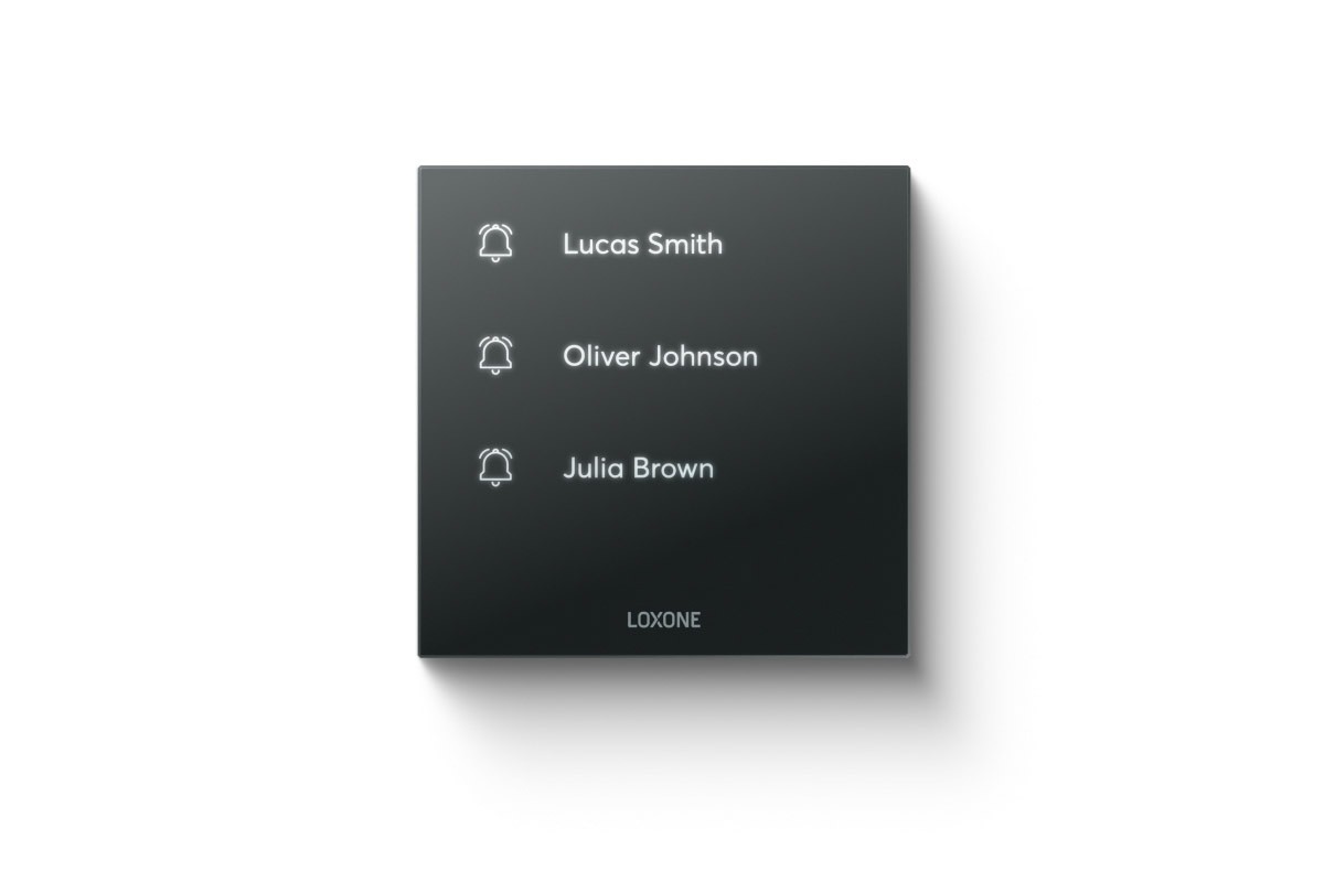 Loxone Touch Pure Flex 24V IP44 Air Anthrazit: flexibler Smart-Home-Taster mit IP44-Schutz, ideal für Licht-, Beschattungs- und Szenensteuerung in jedem Raum.